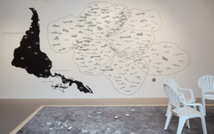 La Loma fue en los años veinte una suerte de nudo cultural en las sierras cordobesas. Y fue allí donde Alfredo Guido ofreció una ponderación del mundo andino. El mural pintado por él en la sala de la casona es magnífico. Es “la joyita” mejor guardada de las sierras. La siguiente descripción corresponde al catálogo de la exposición “La Hora Americana”, realizada en el Museo Nacional de Bellas Artes de Buenos Aires, que exploró el indigenismo, nacionalismo y americanismo en el arte y arquitectura argentino entre 1910 y 1950, curada por Roberto Amigo y Alberto Petrina. Analiza la identidad cultural y el imaginario andino. Explora el “americanismo” como corriente ideológica y estética en el arte argentino, influenciada por la idea de “Eurindia” de Ricardo Rojas. Se buscó resaltar la identidad americana y la tradición indígena frente a narrativas históricas que la excluían.